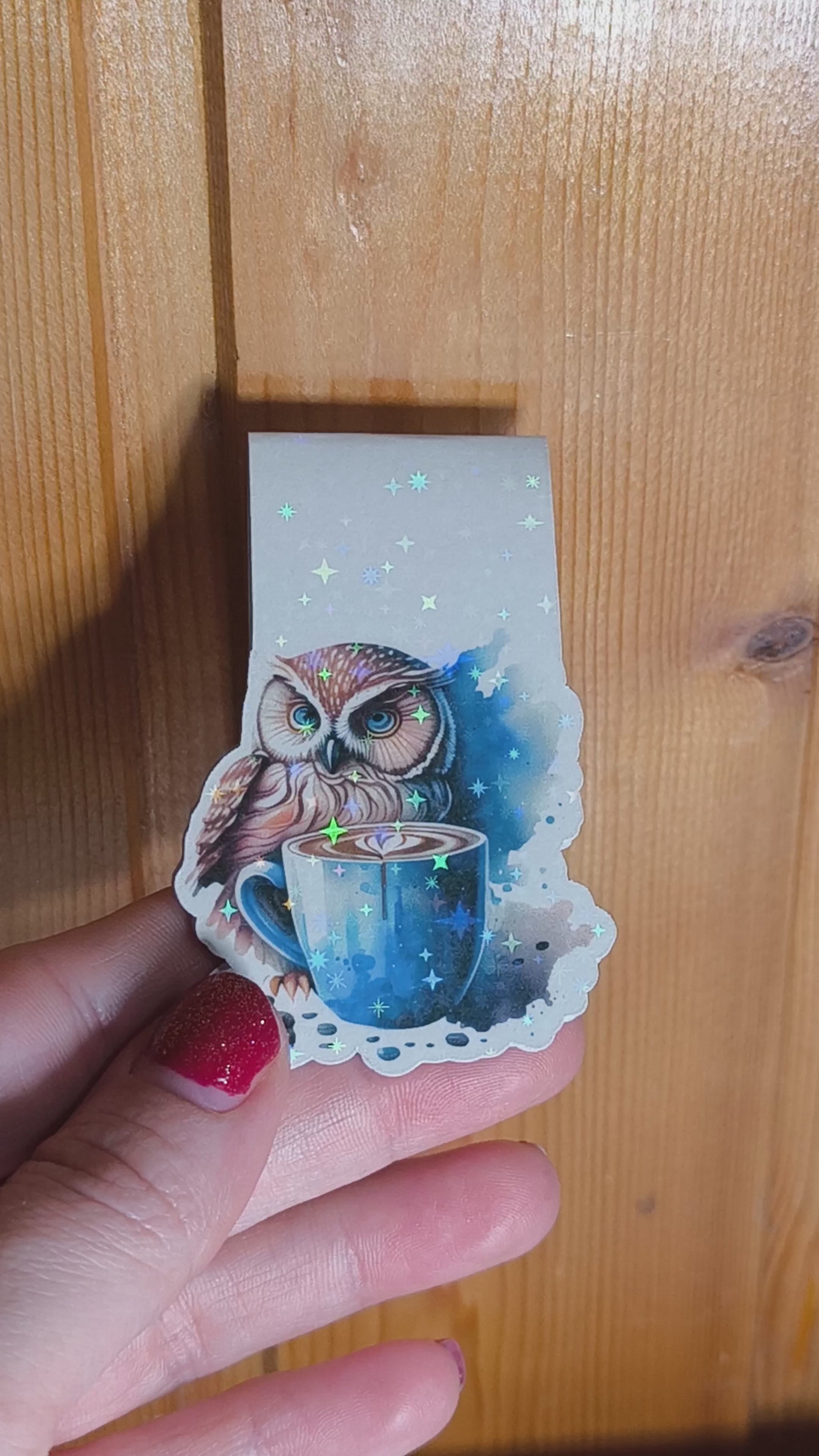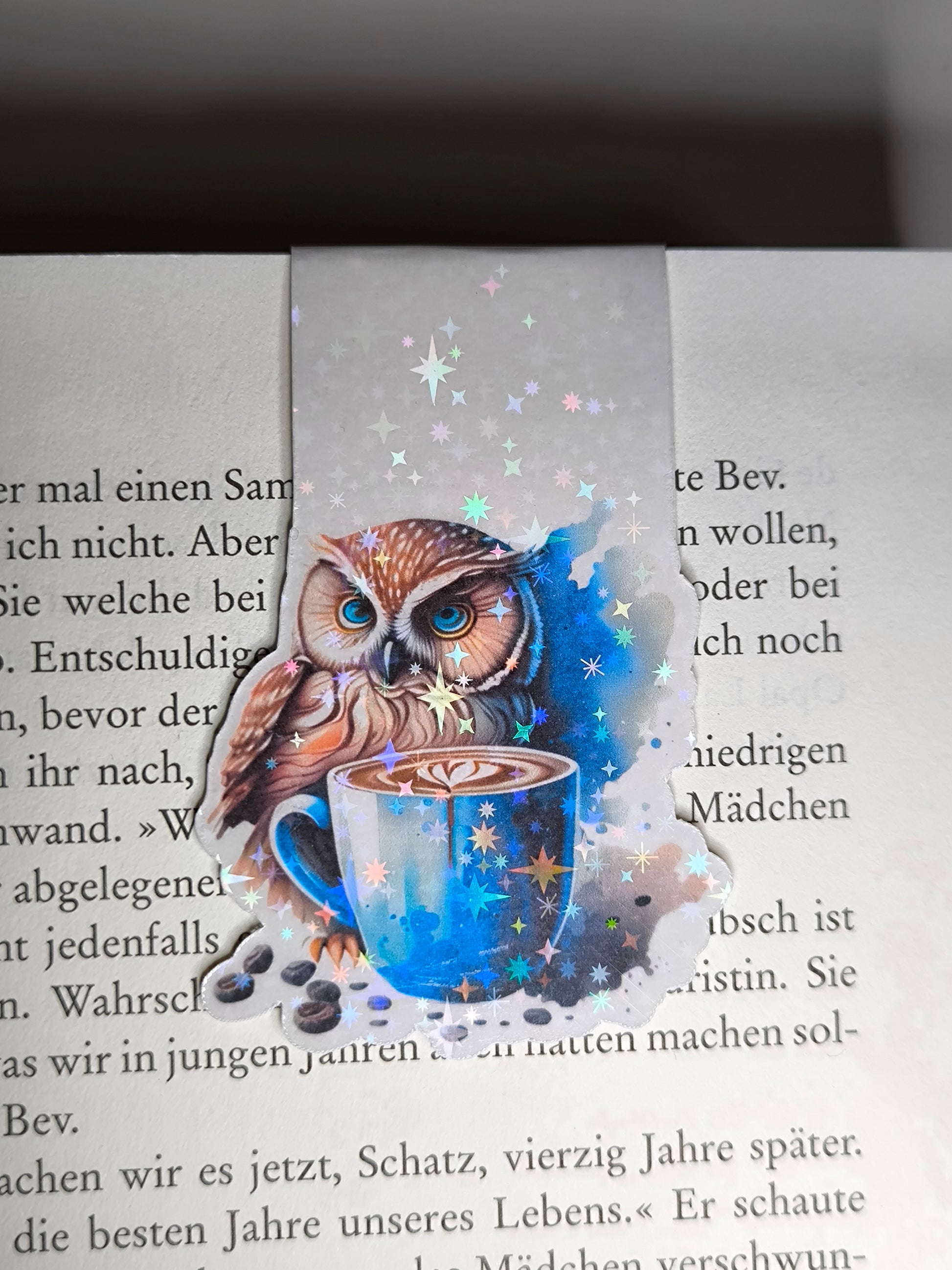 Lesezeichen Eule mit Kaffee (Sternchen-Effekt)